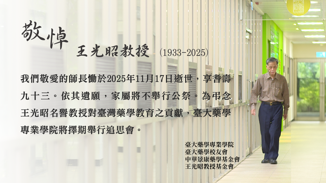 敬悼 本會中華景康藥學基金會第3-5屆董事長 王光昭教授 辭世