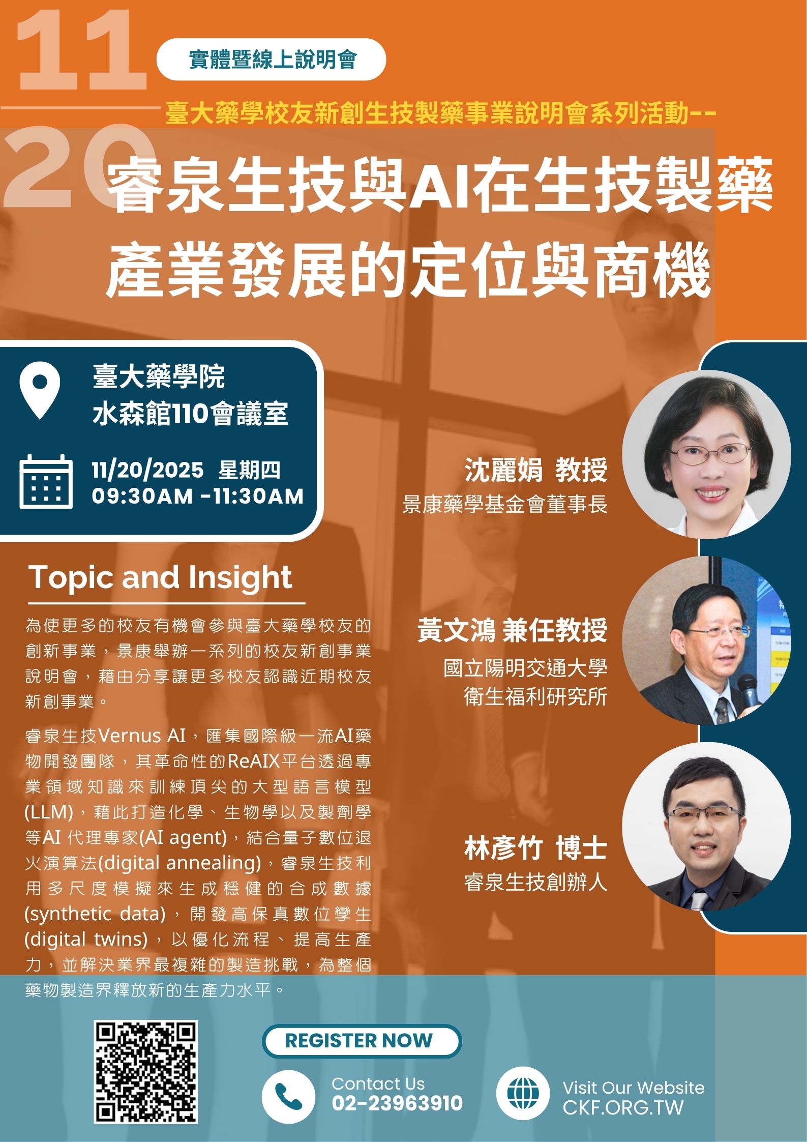 臺大藥學校友新創生技製藥事業說明會系列活動--